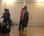 | I was moving around a lot and also talking, giving instruction…A particular feeling seeing Eva…her being in my perception and the intent towards her before [physical contact.] | Seeing her…her tonality…intaking the quality of her movement...very much like a pull…[around me] torso area. Not in a sense from her but…as though water’s going this way. Like following…a feeling of being magnetized in that direction…I saw her and then this feeling of [shwoough]. It was definately in front of me…sort of tingly in my skin…some sparkles of it throughout my torso but the main gust of it felt in front of me. | ….magnetized. It definately didn’t feel like she was pulling me…if there was a net around me and the net was pulled that I would feel the reverberation of the net…feeling it as a torso – and real light. Not any thing significant…feeling a bit of myself going, “Oh, we’re going…“ | …it didn’t feel like [the group was] in an open field. It felt like we were in a closed field…[I could] feel the others nearby but no sense of magnetism towards them…there’s a light string. Like a “Oh, …the trail is … not here.” … I was like, “Oh, I want to play with her.“ |
