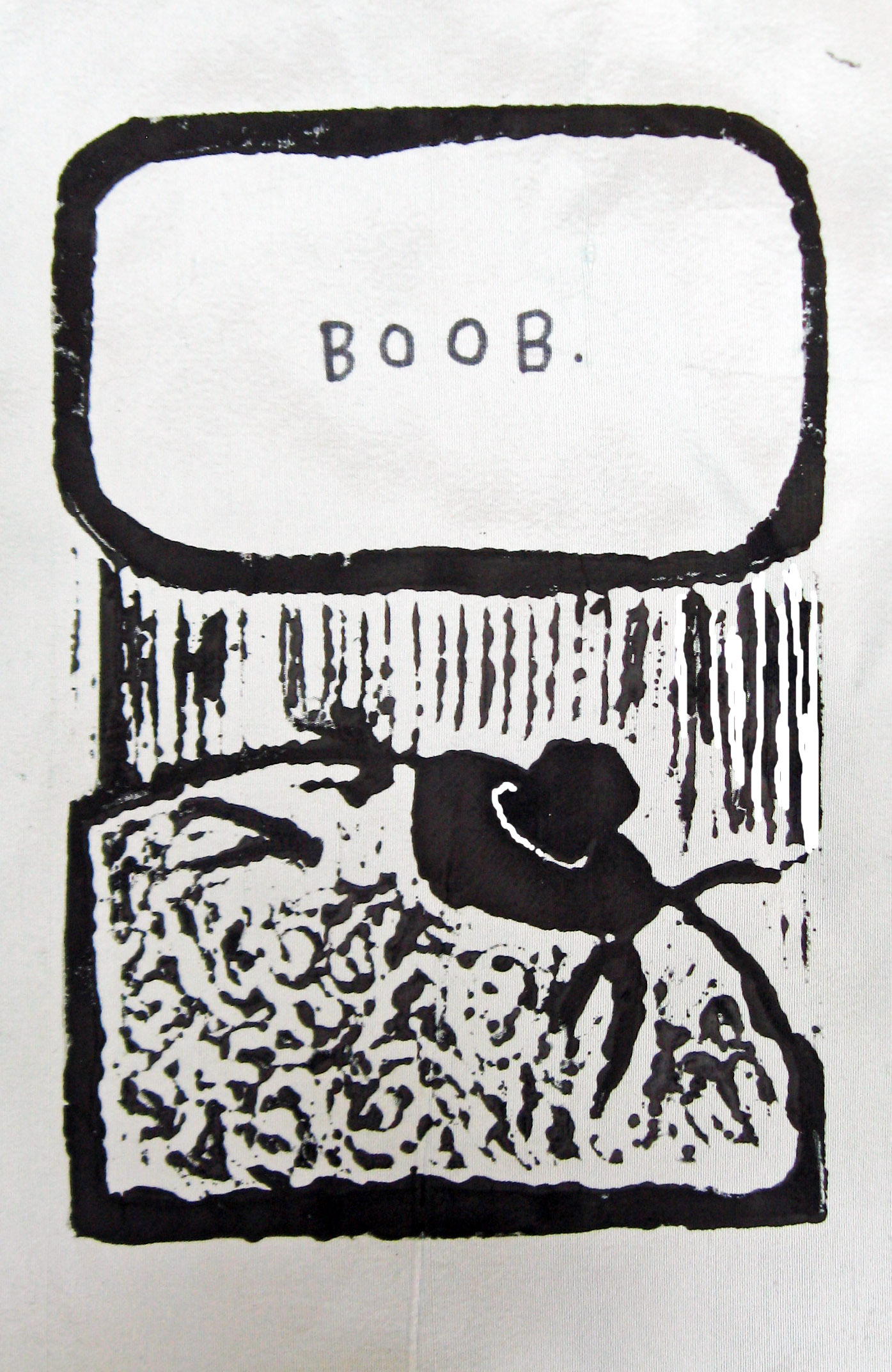 Previous Image Next Image 2013. Boob. Linocut.https://www.paypal.com/cgi-bin/webscr?cmd=_s-xclick&hosted_button_id=TT25A3KA6V8UW Linoleum Print. 6″x4″. Available in black, red or turquoise ink. Also available on paper or fabric patch. $4 – $8 Like Loading...